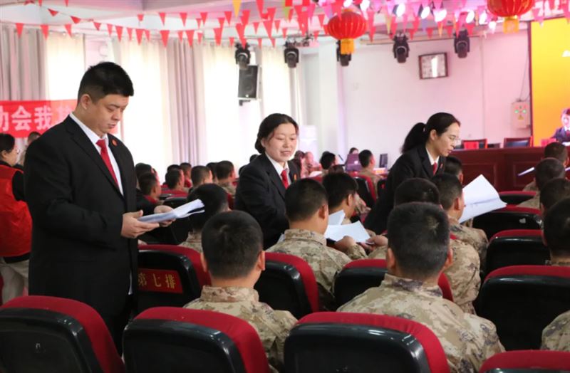 活动中,刘芳魁围绕刑法与民法典、军事法规与纪律条令等进行讲解,以及国际法与战争法基本原则、军人军属权益保护等知识。通过以案释法的形式阐明拒服兵役的法律后果,进一步增强新兵依法服兵役的思想自觉和行动自觉。金梅结合民事审判实践讲解了军人军属生活密切相关的待遇保障、法律地位、抚恤优待等法律内容。