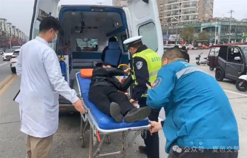 2025年3月11日下午14时50分许,夏邑县公安局交警大队办公室辅警孟红波、陈坤展驾车沿孔祖大道由北向南巡逻至孔祖大道与秉礼路交叉路口时,发现前方一名十几岁的少年和一位年近七旬的老人躺在路面上,两辆电动自行车在距离伤者几米的地方撞在一起后倒在路面上,疑似双方受伤。于是孟红波、陈坤展停车后跑上前去查看两人伤情。
