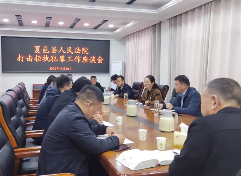 为严厉打击拒不执行生效法律文书的拒执行为,进一步提高干警打击拒执犯罪的业务能力,11月18日,夏邑法院召开打击拒执犯罪工作座谈会。会议由党组成员、副院长苗合理主持,县公安局驻法院打击拒执犯罪大队干警、法院执行局和刑事庭员额法官参加会议,法院党组书记、院长刘德慧出席并作重要讲话。