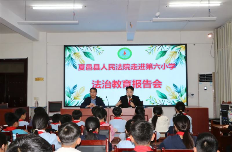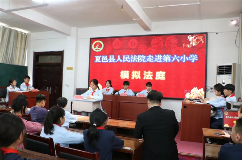 4月21日,春风和煦的校园里,一场特殊的"庭审"在夏邑县第六小学拉开帷幕。夏邑县法院审判委员会专职委员姬凤云与刑事庭干警程宇鹏一行,将庄严肃穆的法庭"搬"进课堂,通过沉浸式法治教育为孩子们播撒法治信仰的种子。