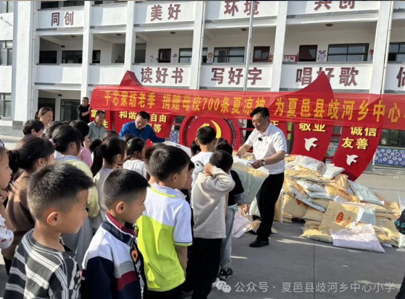 夏日的微风吹拂着歧河乡中心小学,操场上飘荡着孩子们欢乐的笑声。一场充满温情的爱心捐赠活动在此拉开帷幕,爱心人士季万里带着精心准备的700套崭新的夏凉被回到母校,为孩子们送上温暖与关怀。