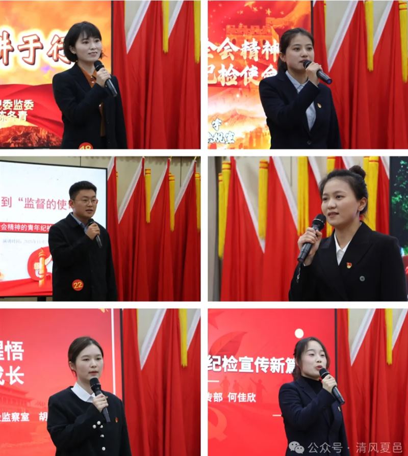 “以更高标准、更严要求、更实作风践行使命,于实践中谋实效,于沉淀中向未来!”夏邑县纪委监委组织部青年干部陈冬青在演讲比赛现场的铿锵誓言引发全场共鸣。11月7日,全县纪检监察系统“深学四中全会精神 践行纪检使命担当”主题演讲比赛激情开赛,23名纪检监察青年干部同台竞技,用青春之声传递奋进力量,以赤诚之心诠释使命担当,上演了一场清廉与热血交织的精神盛宴。