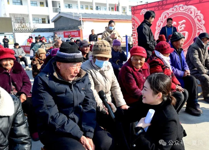 活动现场干货满满:咨询台前,有法律维权、农业技术、健康养生的专业解答;志愿服务区,免费理发让大家感受贴心温暖;文艺舞台上,杂技的惊险、豫剧的醇厚、红歌的激昂,为大家带来一场视听盛宴;更有60岁以上老人专属的免费大锅菜,让冬日里多一份烟火温情;大红福字幕布前,摄影家用镜头记下80余位耋耄老人满面沧桑;县委党校讲师冯静芳,手握话筒走到老人面前,就农村铺张浪费、封建迷信、薄养厚葬、攀比炫富、高价彩礼等陈规陋习展开对话,倾听老人的心声,了解老人的期盼。她表示要把这些陈规陋习转变成,孝善友好、勤俭节约、积极向上、文明和谐的良好风气,才能形成和谐稳定的社会氛围。这些服务或许看似微小,但每一份付出都承载着党和政府对乡亲们的牵挂,每一项举措都聚焦大家的急难愁盼。