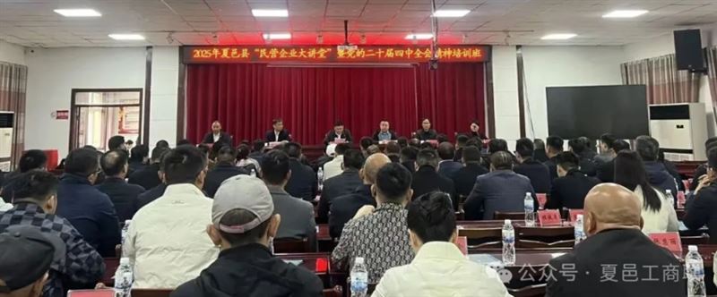 为强化民营经济人士政治引领,推动党的二十届四中全会精神在民营经济领域落地生根,12月23日至24日,夏邑县工商联(总商会)在县委党校五楼会议室成功举办全县民营企业大讲堂暨党的二十届四中全会精神培训班。全县各领域民营企业代表、商会负责人等100余人参加培训。