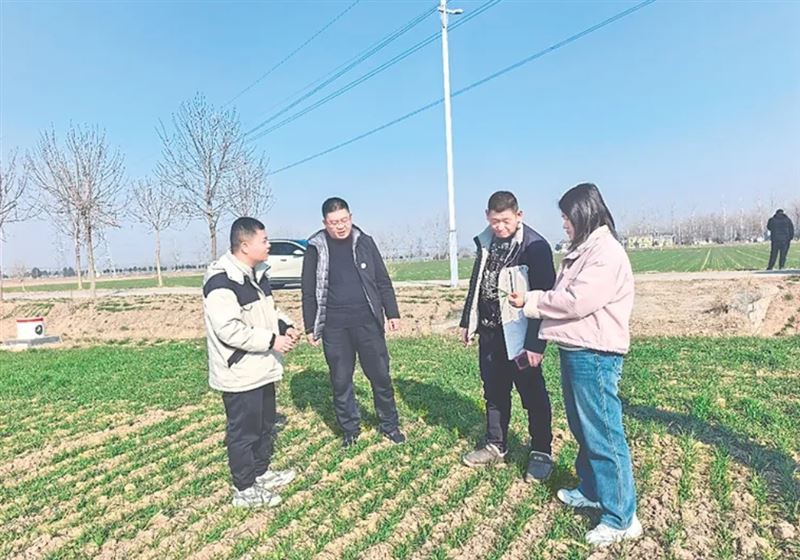 特派员们仔细核查小麦苗情,逐一记录地块情况,现场为麦田“把脉问诊”、分类施策。