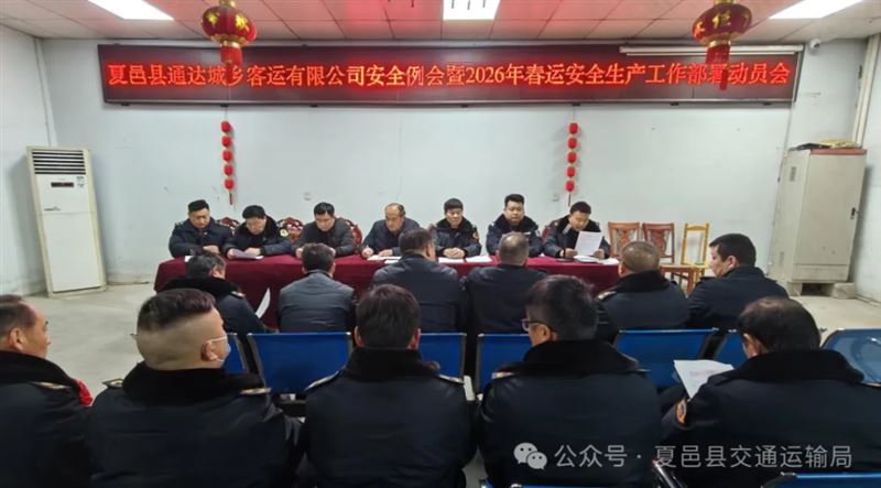 1月31日18时30分,夏邑县通达城乡客运有限公司组织召开安全生产例会暨2026年春运安全生产工作部署动员会。县交通运输局党组成员、副局长李振济出席会议,公司领导班子成员及全体在岗员工参会。会议由公司副经理韩守良主持。