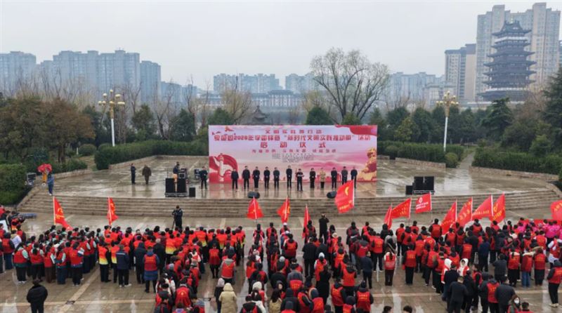 3月2日上午,夏邑县2026年学雷锋暨“新时代文明实践推动周”活动启动仪式在长寿广场举行。县委常委、宣传部长、副县长梁英才出席并宣布活动启动。
