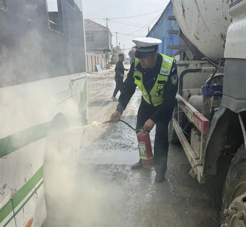 2026年4月2日上午11时许,夏邑县公安局交通管理大队胡桥中队民警张胜利带领辅警王东晓、张营放、贾宇璞、梁万顺驾车沿县道010线由南向北巡逻至马头镇徐楼村路段时,发现前方一辆高速行驶的由白庙驶往县城的公交车左后轮处冒出滚滚浓烟,轮胎部位隐约有火苗蹿出,而公交车驾驶人浑然不知,继续正常行驶。如果不及时灭火,极易造成轮胎燃烧后爆胎致使公交车失控,发生乘客伤亡的事故。张胜利发现险情后立即驱车追赶将公交车拦停,一脸懵的司机下车后才发现公交车遇到的险情。