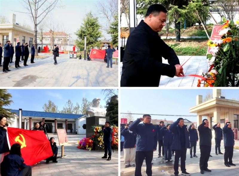 活动现场庄严肃穆,党员代表怀着崇敬之心,向彭雪枫将军塑像敬献花篮。全体人员神情凝重、肃立致敬,向革命先烈深深三鞠躬,寄托无限哀思与崇高敬意,并在将军塑像前重温入党誓词。