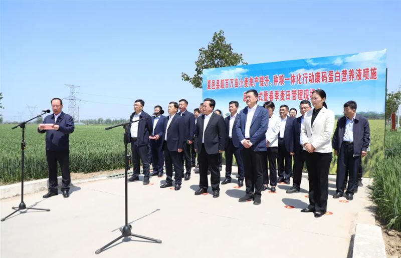 4月19日,夏邑县在胡桥乡举行“百万亩小麦单产提升、种粮一体化行动蛋白营养液喷施启动仪式暨春季麦田管理现场会”。会议旨在深入贯彻落实习近平总书记关于保障粮食安全的重要论述,全面部署小麦蛋白营养液喷施及