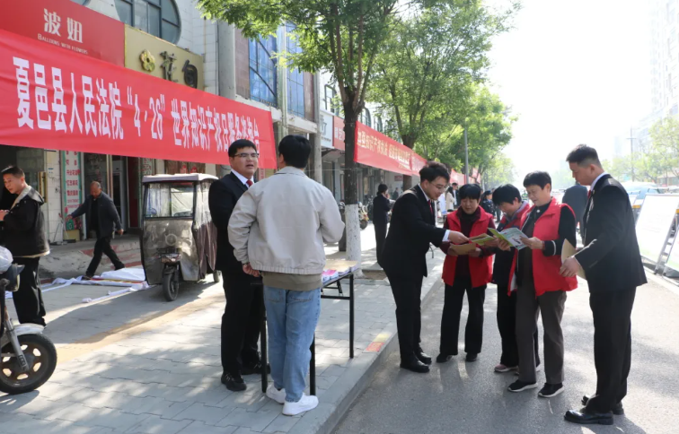 在第26个世界知识产权日到来之际,4月23日,夏邑法院组织干警在县府路开展普法宣传活动,切实提升群众知识产权保护意识,让法治力量为知识产权保驾护航。活动现场,干警通过悬挂条幅、设置咨询台、宣传展板、发